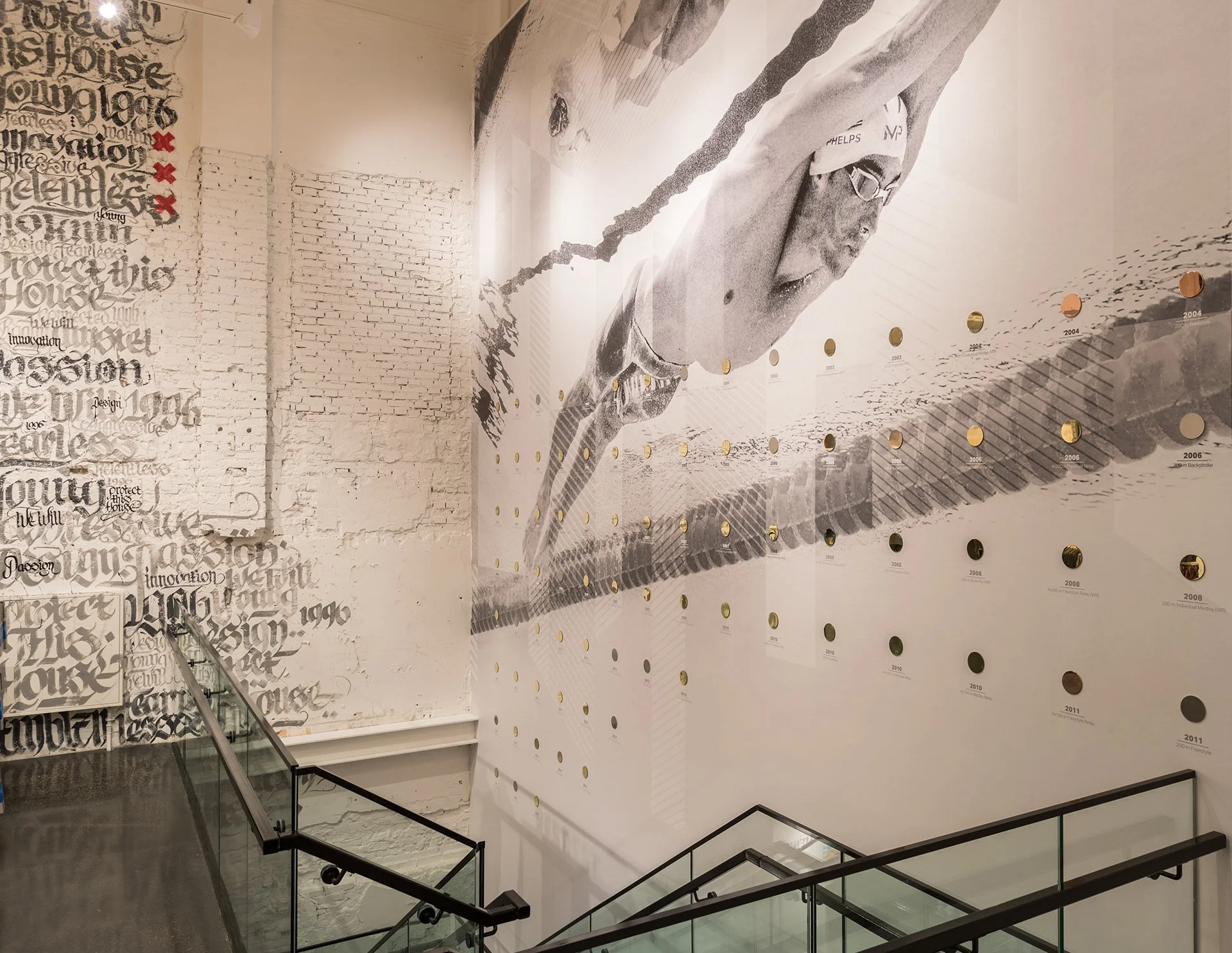 The first flagship store in Europe opened with a “bang” as then heavyweight champion Anthony Joshua punched through the front door. Features included a UA technology timeline along the stairs, a tribute to Michael Phelps 28 Olympic Medals, and a local artist painting on the entry wall.